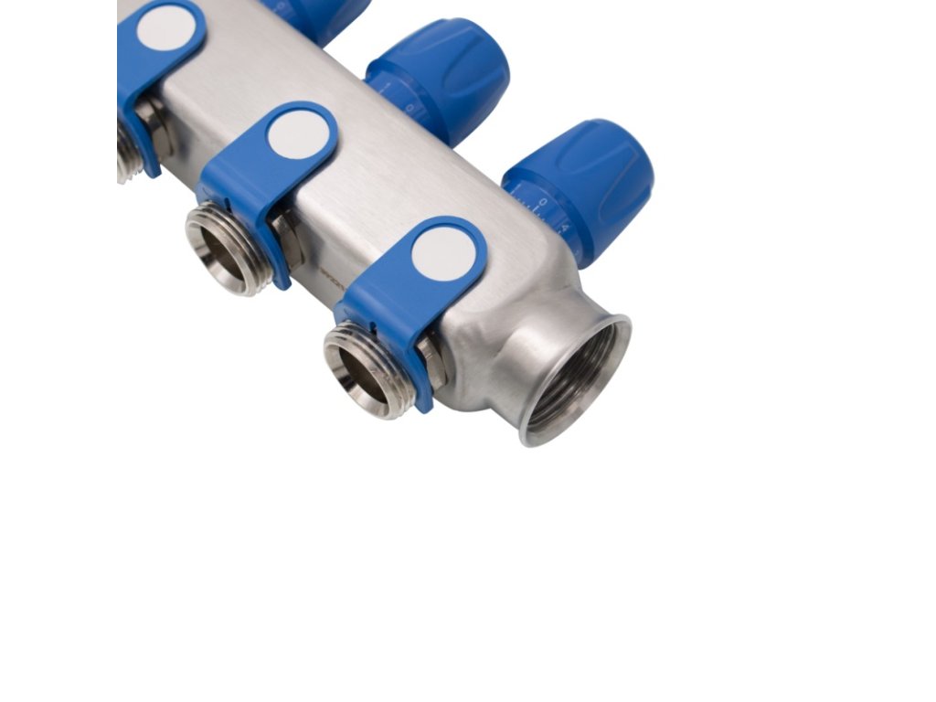 Nerezový rozdelovač 9 cestný 1"x3/4 modrý
