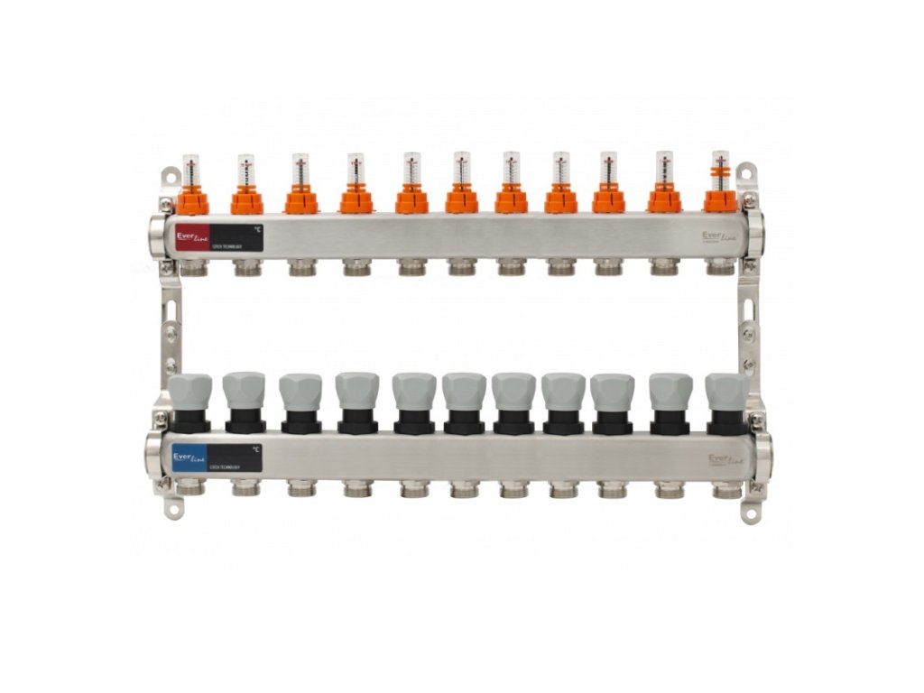 Zostava rozdeľovač/zberač s prietokomerom, INOX 11 cestný 1”x3/4”