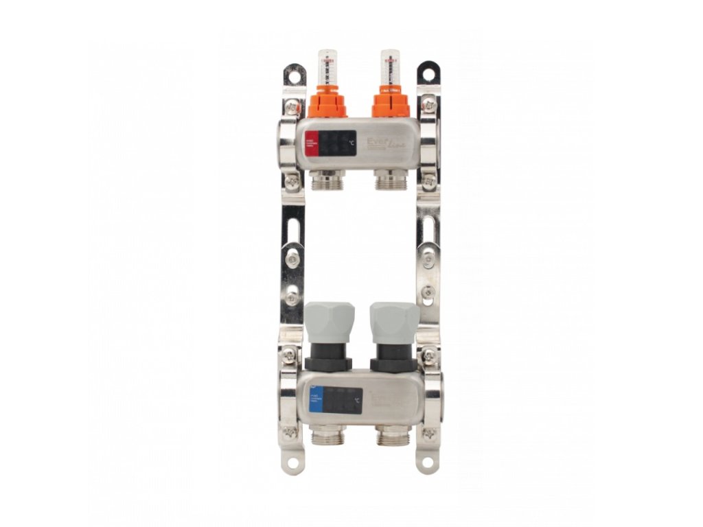 Zostava rozdeľovač/zberač s prietokomerom, INOX 2 cestný 1”x3/4”