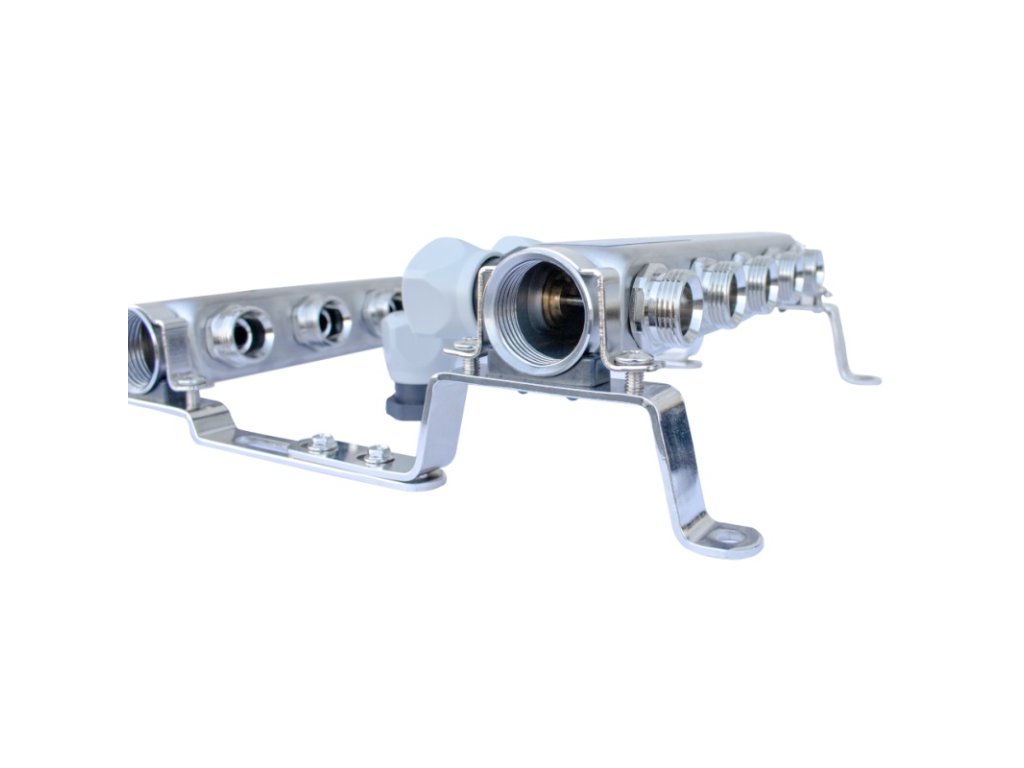 Zostava rozdeľovač/zberač s prietokomerom, INOX 9 cestný 1”x3/4”